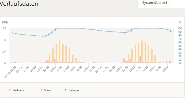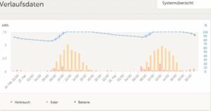 Der Second Life Hausspeicher ist Teil eines umfassenden Energie-Gesamtsystems. Auf dem Dach des Hauses produziert eine 6.6 kWp Photovoltaikanlage deutlich mehr Energie, als im Haushalt und für das Laden von Stromboli II benötigt wird. Ohne Speicher muss ein grosser Teil dieser Energie ins öffentliche Netz eingespeist werden, während zu anderen Tageszeiten dennoch Strom aus dem Netz bezogen wird. Dieses zeitliche Ungleichgewicht zwischen Produktion und Verbrauch ist eine der zentralen Herausforderungen der Energiewende – und genau hier setzt der Second Life Hausspeicher an.